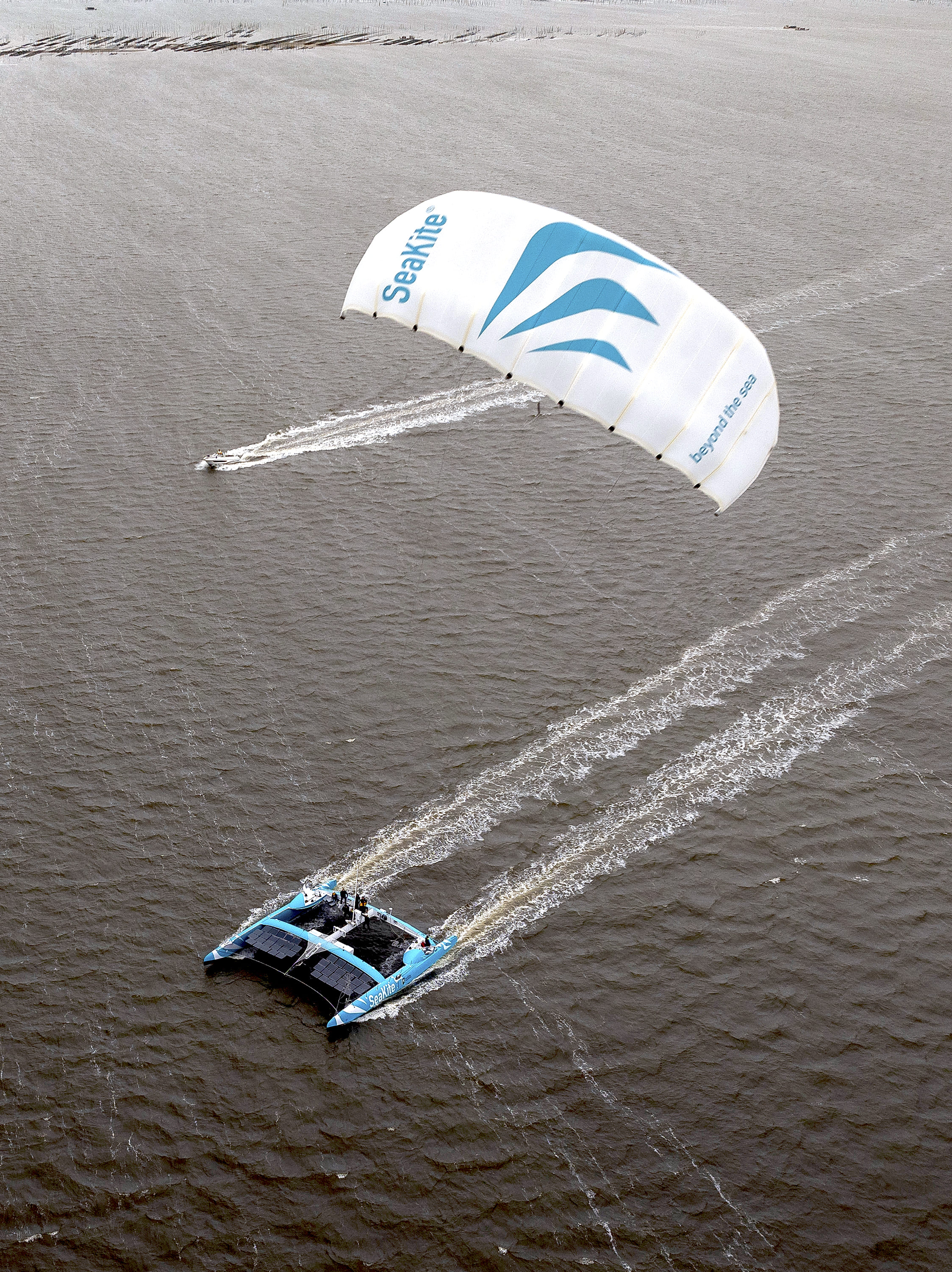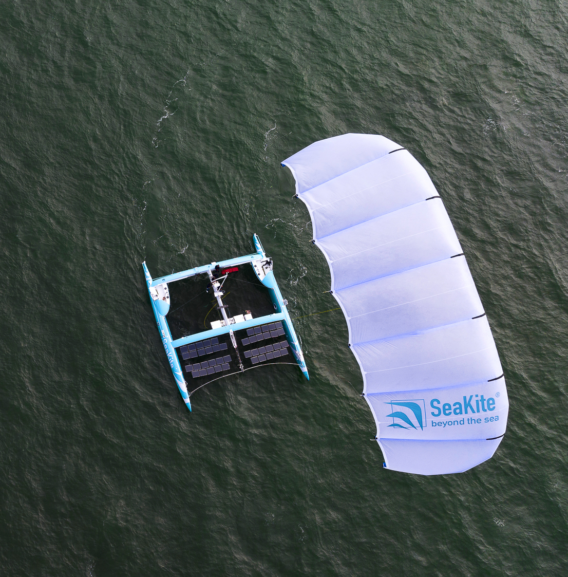 Moreover, the kite has a major advantage: it can harness strong, stable winds high above the surface, far stronger than those available to traditional sails. Even today, the SeaKite® demonstrates remarkable traction, even when surface-level winds are weak.